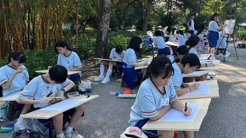 為培養學生藝術熱情、提升繪畫技藝並促進全面藝術素養,我校視藝科老師日前組織20名學生代表學校,參與由澳門中華教育會主辦的「第45屆全澳學生繪畫比賽」。比賽於2025年10月18日在紀念孫中山市政公園順利舉行,來自全澳多所中小學的參賽者匯聚一堂,現場進行寫生與主題繪畫,充分考驗即時創作能力與藝術表達力。